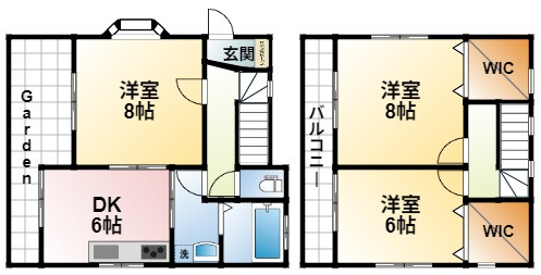 B・T別、オートバス、シャワー、追炊機能、浴室に窓あり、トイレ、温水洗浄便座、洗面所、洗面台、シャワー付洗面化粧台、洗面所独立、3口以上コンロ、システムキッチン、グリル、収納スペース、クローゼット、ウォークインクローゼット、シューズボックス、室内洗濯機置場、プロパンガス、エアコン、モニター付きインターホン、バルコニー、庭