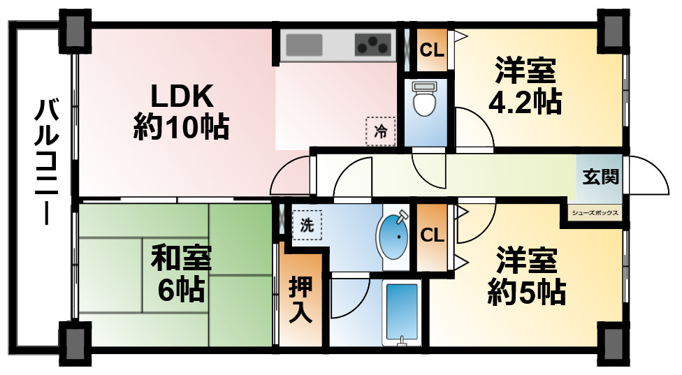 LDK 10.0帖/和室 6.0帖/洋室 5.0帖/洋室 4.2帖 - 向き